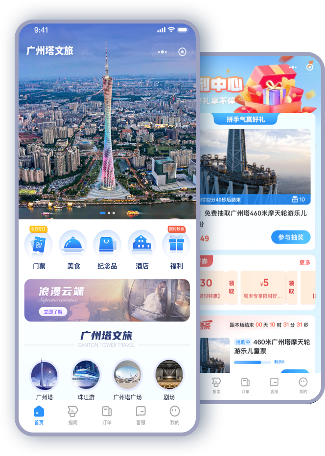 搭建了以广州塔集团为主体的多业态文旅资源平台,实现一个平台整合展示并售卖集团旗下多个业态的旅游产品。游客通过平台可以实现所有文旅产品、纪念品的购买,预定美食餐厅、酒店,方便便捷,平台统一收款,系统自动清分。